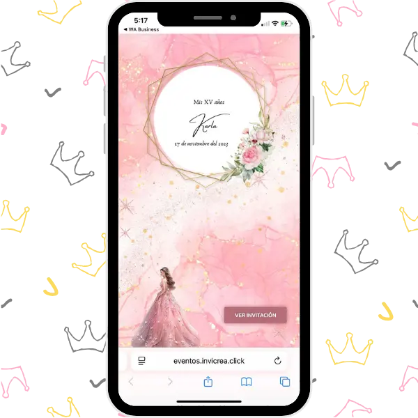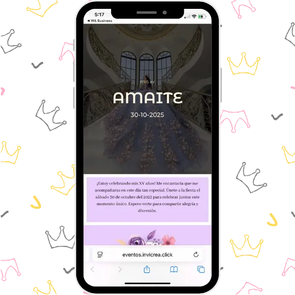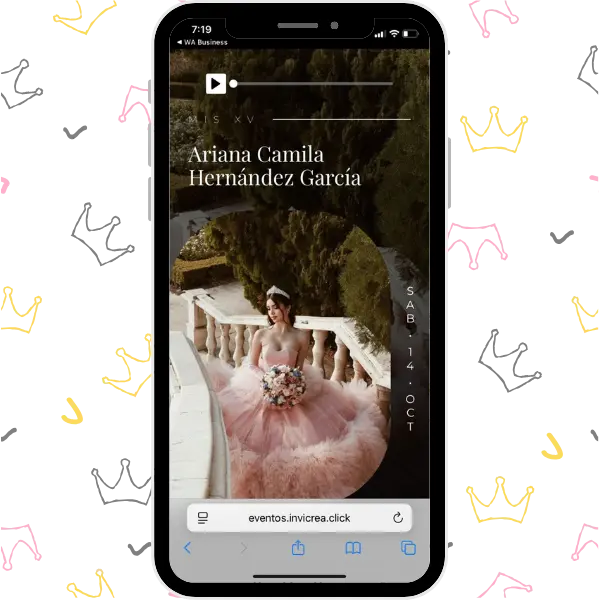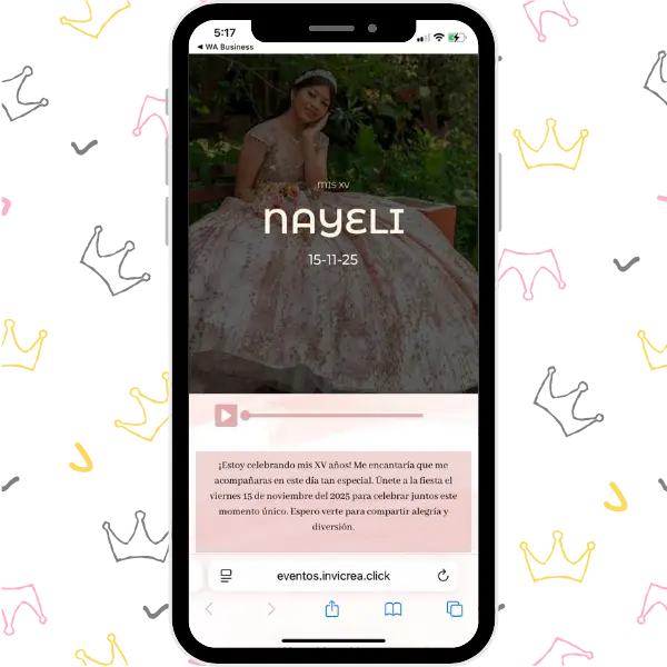 Una invitación digital única, completa y deslumbrante, con un diseño lleno de color y detalles que harán brillar al máximo la celebración de tus XV años.